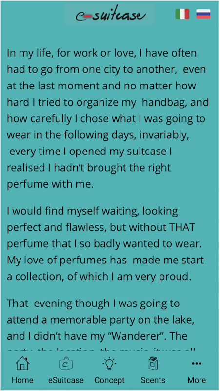 Each e-suitcase’s fragrance is been designed by renowned Perfumers.