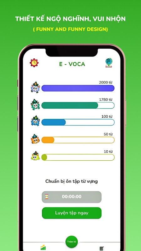 - Thiết kế ngộ nghĩnh và thân thiện giúp cho người học cảm thấy thoải mái khi học, từ đó làm tăng hiệu quả ghi nhớ từ vựng.