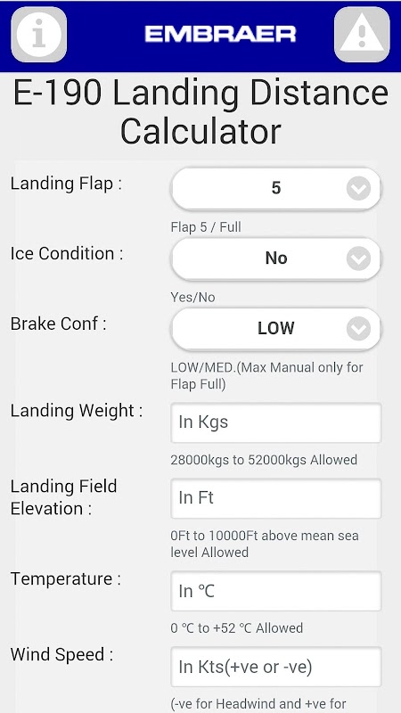 E190 Landing distance calculator is the perfect tool for every E190 pilot flying the 190 series. This app will calculate for you the required operational landing distance in just a few steps.