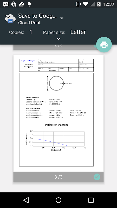 Interactive graphs allow the user to pinpoint shear and moment anywhere on the beam or determine where the max deflection will occur in their beam analysis. That's because Easy Beam's graph allow the user to use a seek bar to move a cursor along the graphs. By default, the graphs also display local min and max values on the screen for your convenience.