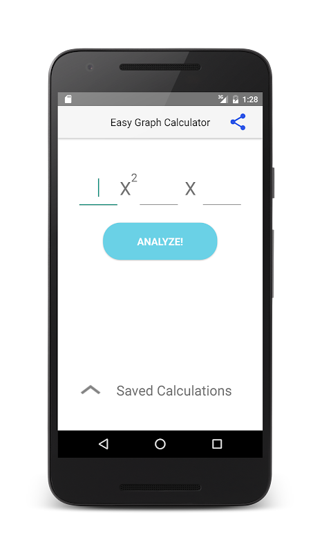 A diferencia de otras aplicaciones de calculadora gráfica que confunden a los usuarios con múltiples opciones, Fácil calculadora gráfica viene con una interfaz de usuario muy simple. Solo tienes que introducir los prefijos de la ecuación en la aplicación de calculadora parábola, y presione el botón "Analizar". ¡Viola! Se le presentará con una tabla de visualización de esa ecuación.