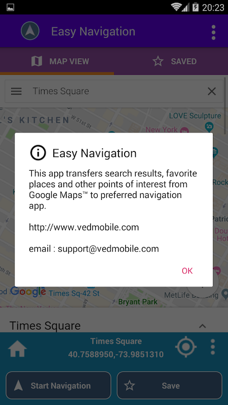 This app transfers search results, favorite places and other points of interest from Google Maps™ to preferred navigation app. It is compatible with other map providers and navigation apps too. You can now find the place you want to go using Google Maps™, and navigate to that location using your favorite navigation app.