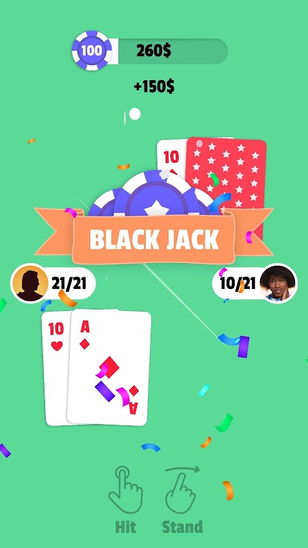 Hyper casual blackjack twenty one with One finger gameplay