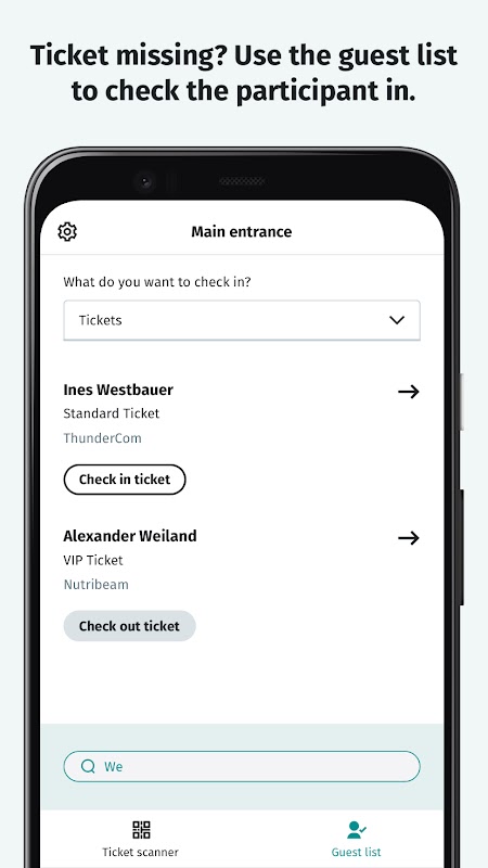 You can now select tickets of a category and let in people to different areas of your event, eg. your VIP lounge or workshops. You can also use your stats now to keep track of how many tickets have already been scanned in total and when – and look up more details in the entry report.