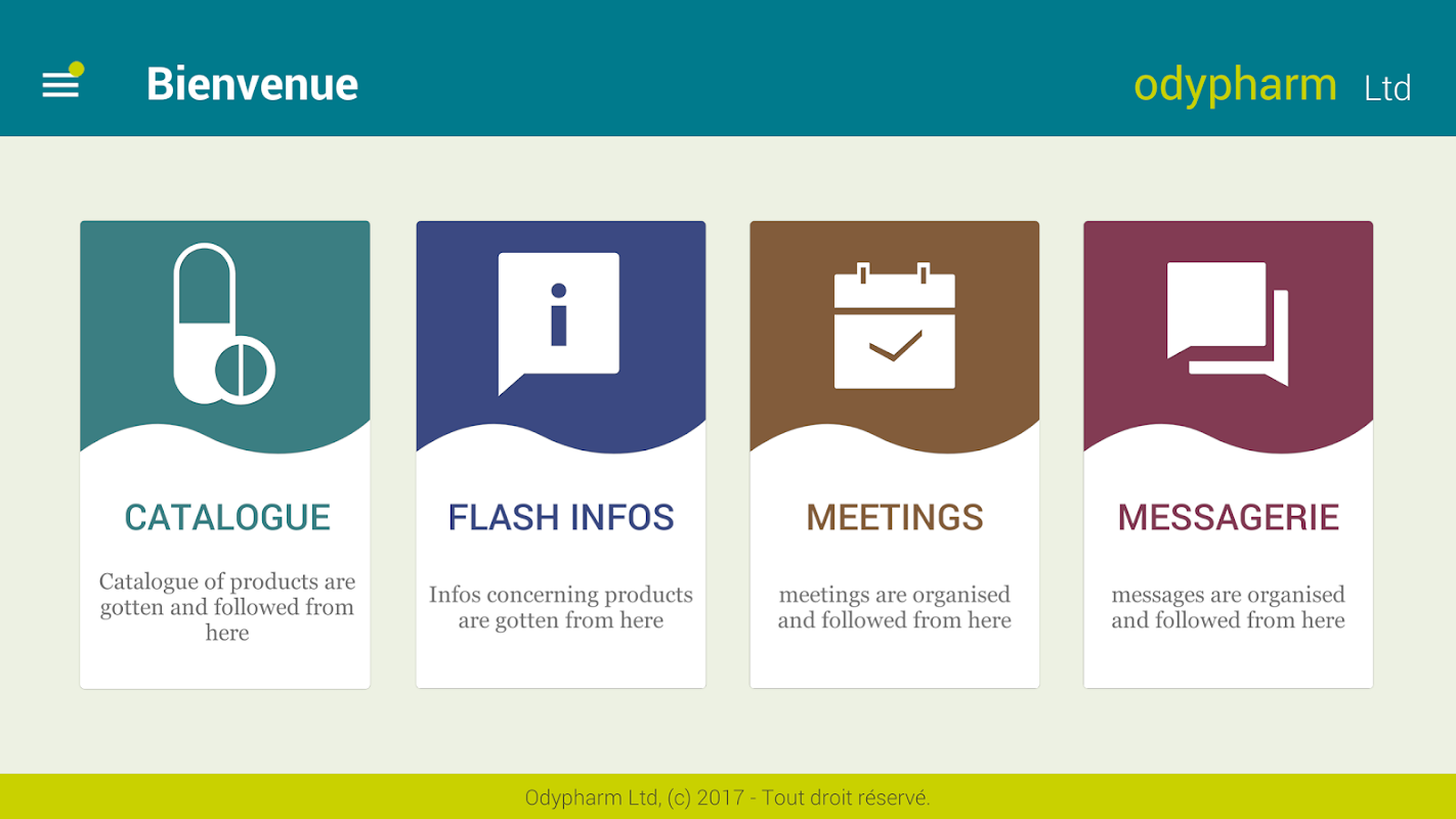 EasyMonitor est une application destinée aux professionnels de santé spécialisés dans les pharmaceutiques avec pour objectif la présentation, la gestion des équipes mais aussi le monitoring de la promotion médicale. Pour accéder à l’application, vous devez au préalable faire partie de nos équipes et posséder un compte utilisateur. Une fois dans l’application, accédez aux catalogues de produits dont les présentations complètes sont disponibles sur notre plateforme et classés par catégories. Grâce à la section Flash Info restez à l’affût de nos dernières actus. La section Meetings est un organisateur de Rendez-vous, de présentation avec tous rapports y afférent. Quant à la section Messagerie elle vous permet de garder le contact avec l’équipe de coordination. Dans la prochaine version : Outil de statistiques présentant les résultats des ventes par pays.
