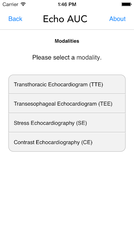 The ASE Echo AUC App provides a simple, practical approach for physicians to pursue additional professionalism in their daily practice in a more accessible and attainable way. The physician will be motivated to use this app because he/she will be able to have an immediately accessible source to make a quick decision for patient care that is backed up by expert opinion. The physicians will find it easy to use the free AUC App to stratify the patient, by disease and condition, into different treatment scenarios and determine quickly whether an echo should be ordered. They will also be prompted with information on how to best describe these testing limitations to the patient. They will then have more time to focus on the care of the patient and be able to eliminate extra, unneeded or overused testing. This App includes the 98 AUC indications for transthoracic echocardiogram (TTE).