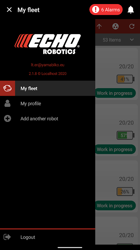 La aplicación Echo Robotics te da control sobre tu robot, estés donde estés. Verifique el estado en vivo, el nivel de batería y el rendimiento de los últimos cinco días. Obtenga una descripción general sencilla de las actividades, los parámetros y el cronograma. Envíe cualquier comando y obtenga confirmación instantánea. Verifique la ubicación del GPS del robot con la posición de las alarmas asociadas. Busca, ordena, filtra y agrupa para comparar robots.