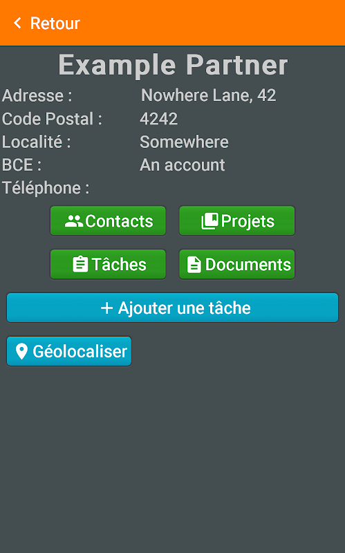 - Contactez vos partenaires par mail ou par téléphone d'un simple clic grâce au lien avec les applications dédiées de votre tablette ou de votre téléphone.