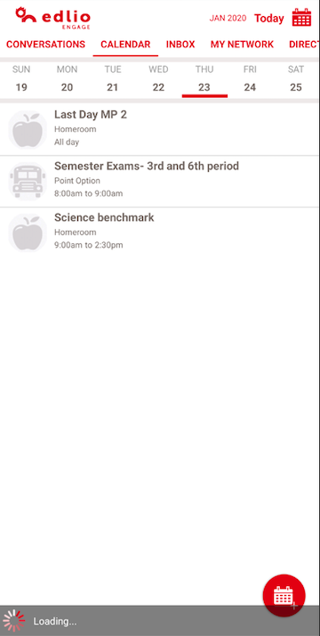 • Calendar – A shared calendar allows districts, schools, teachers, and groups to post upcoming events, and includes volunteer and sign up management within each event. The calendar comes fully equipped with event notifications and reminders, and allows users to sync Edlio Engage events with their personal iCal, Google, or Outlook calendars.