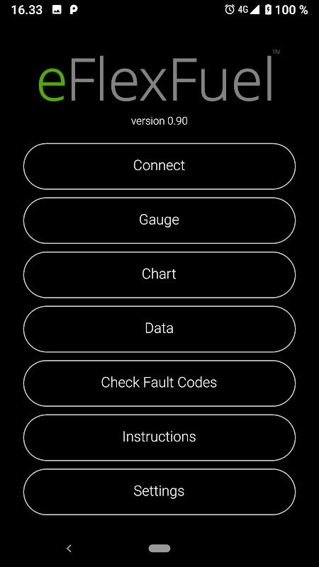 Aplicación eFlexFuel para monitorear los datos del kit de actualización eFlexFuel E85 FlexFuel.