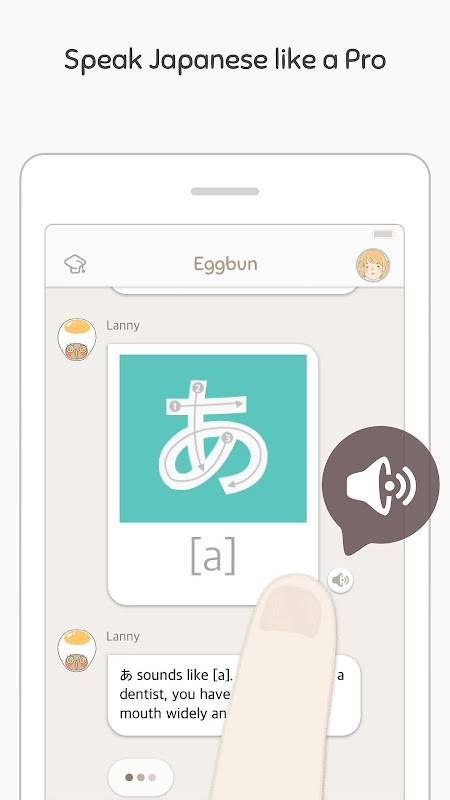 Eggbun teaches you Japanese in a simple conversational style. You quite literally listen and “chat” with your tutor Lanny, the cute little character that guides you along to learn the Japanese language and culture.