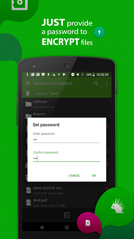 EgoSecure cifrado en cualquier lugar es un gestor de archivos con funciones de cifrado de datos. La aplicación proporciona todas las operaciones necesarias para procesar eficientemente archivos y carpetas. Los archivos pueden ser encriptados con el fin de protegerlos del acceso no autorizado cuando se almacenan en un dispositivo o en almacenamiento en la nube (datos en reposo) o transferidos a través de canales de comunicación abiertos como Internet (datos en movimiento).