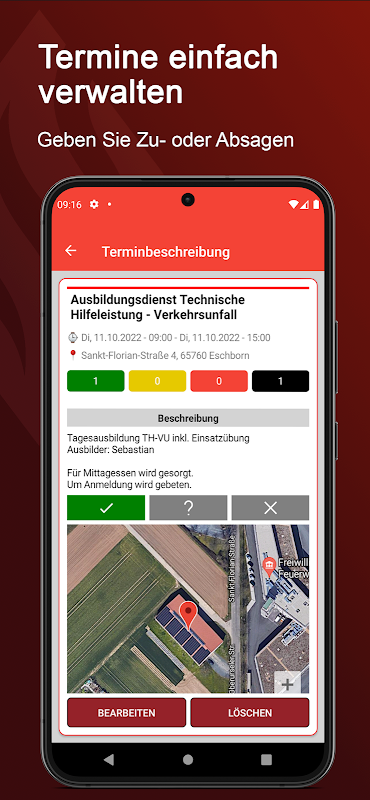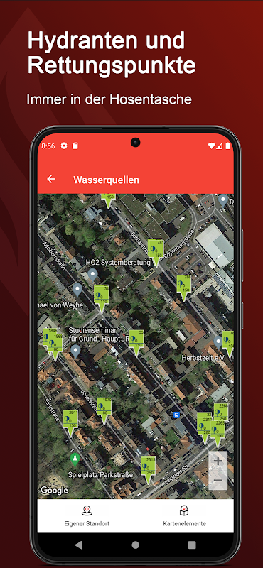 + Newsfeed con noticias / fechas / información y operaciones propias, así como de la revista de bomberos, Wiesbaden112 y BlaulichtNews