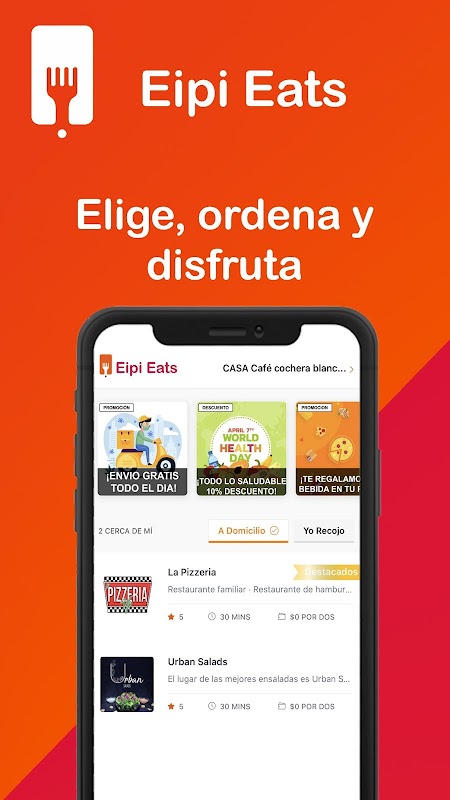 Descarga la App y empieza a vivir la experiencia Eipi Eats que viene acompañada de los mejores restaurantes y exclusivas promociones.