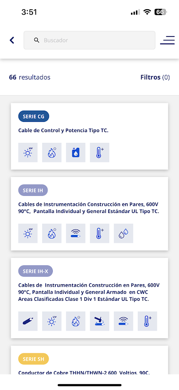 En nuestra app puede encontrar información relacionada a cables, conectores, bandejas y transformadores.