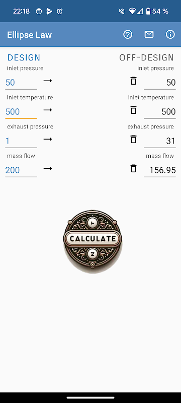 La Ley Elipse calcula la Ley del Cono de Stodola (también conocida como "La Ley de la Elipse") para turbomaquinaria.