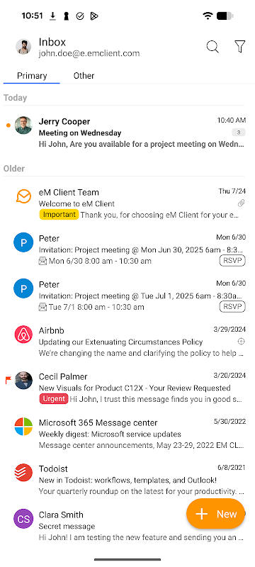 eM Client para Android no tiene limitaciones como el resto de las aplicaciones móviles: combina la comodidad móvil con funciones avanzadas que normalmente solo se encuentran en computadoras de escritorio.