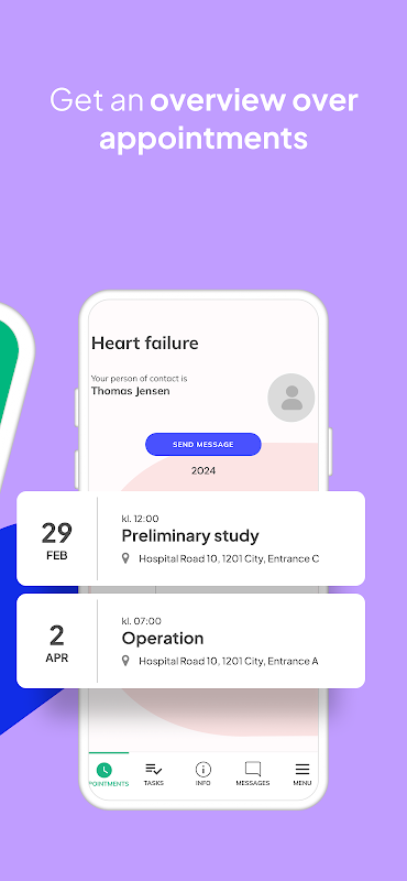 Tareas: para garantizar que esté preparado para sus citas, existe una serie de tareas a lo largo del tratamiento: antes, durante y después de su cita. Una tarea podría ser leer sobre las precauciones de anestesia antes de una operación (cita). Todo el contenido de su guía de atención es desarrollado por el hospital o municipio.