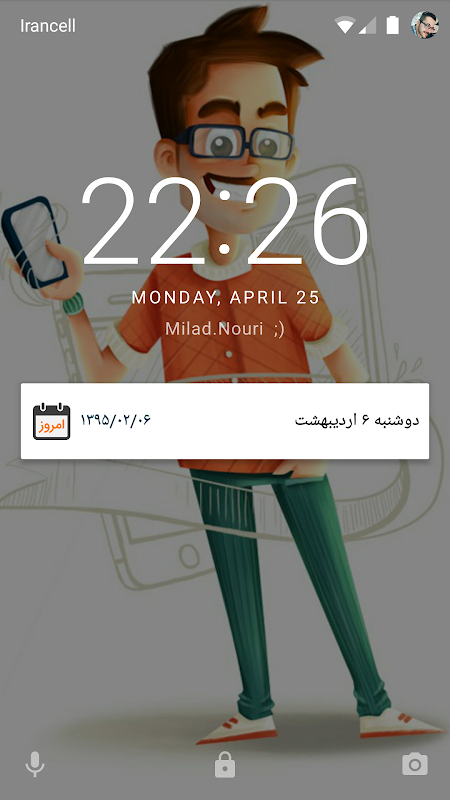 امروز یک تقویم شمسی سبک و کاربردی با قابلیت نمایش تاریخ روز در نوار نوتیفیکیشن و همچنین نمایش عدد روز در نوار استتوس گوشی شما میباشد.