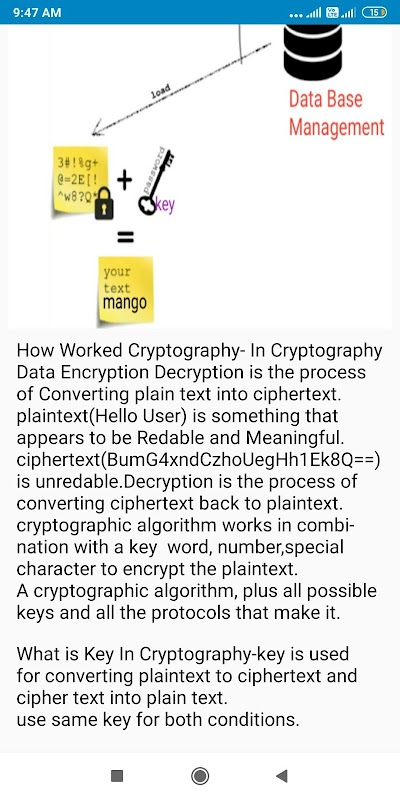 In This App You Will Learn About Cryptography Methods. how to work cryptography on internet how to secure your data by unauthorized user on internet.