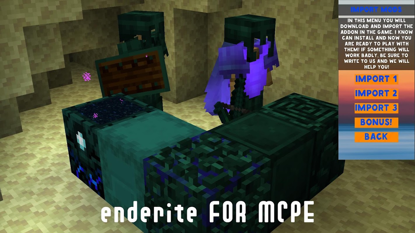 ✅ In addition to the main Enderite Items Mod and Addon, there is always a bonus in the form of a map, mods or skins!
