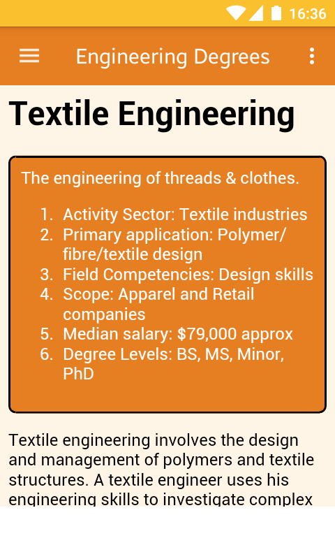 This app provides basic information on different types of Engineering branches. Entire list includes: