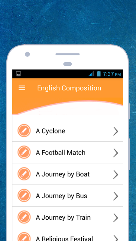 English composition apps you can find lots of English composition collection for reading and writing. All composition is very easy and standard for students. We offer you to take advantage of our English composition apps which can help you with your assignment. There are very interesting composition in this English composition apps. We wish to give you the opportunity to uses our application which can be useful to you in life.