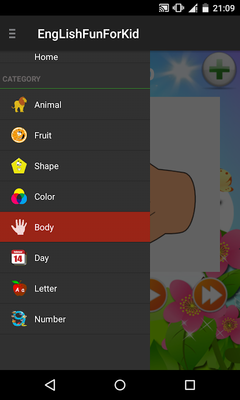 La aplicación tiene un montón de lecciones subdivididos en categorías populares tomadas de los niños ex de vida cierre: