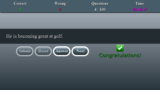 When the student/user makes a mistake the application indicates and also shows the correct answer. Take the grammar tests repeatedly and analyse your improved results each time.