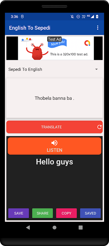 Traduce fácilmente cualquier texto del inglés al sepedi y viceversa. Simplemente escribe la frase o palabra que quieres traducir y pulsa el botón "Traducir". La app ofrece traducciones rápidas y fiables en ambos sentidos: perfecta para el uso diario, el estudio o la comunicación.
