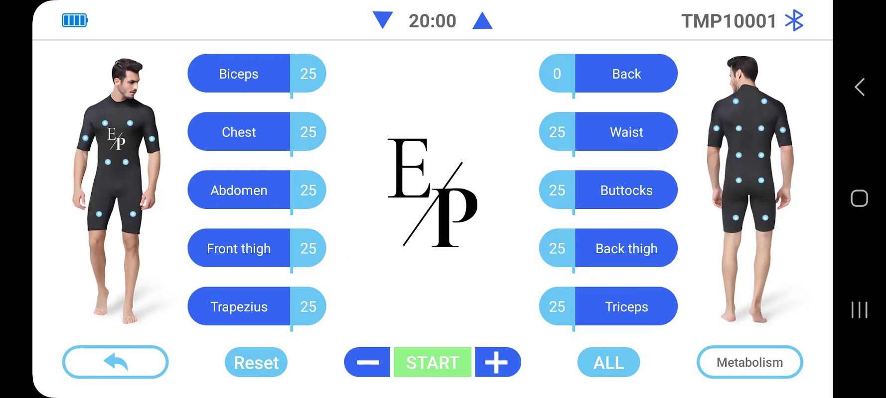 EP EMS is an application software for fitness exercise, simple registration of user information, can be quickly connected to the corresponding device use, provide control mode guidance and multi-mode selection training to meet the needs of various parts of your body exercise, help you easily exercise at home. EP EMS connects to the corresponding device through Bluetooth, can control the output of the corresponding body parts of the device, adjust the strength, and provide multi-mode training programs to provide users with different experiences