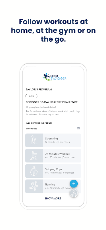 Epic Swagger se trata de mostrar siempre lo mejor de ti. ¡Con nuestra aplicación, tendrás acceso a programas de entrenamiento diseñados específicamente para ayudarte a alcanzar tus objetivos de salud y fitness! Puedes seguir y realizar un seguimiento de tus entrenamientos, tu nutrición, tus hábitos de estilo de vida, mediciones y resultados, todo con la ayuda de tu entrenador. También puede beneficiarse del asesoramiento personalizado.