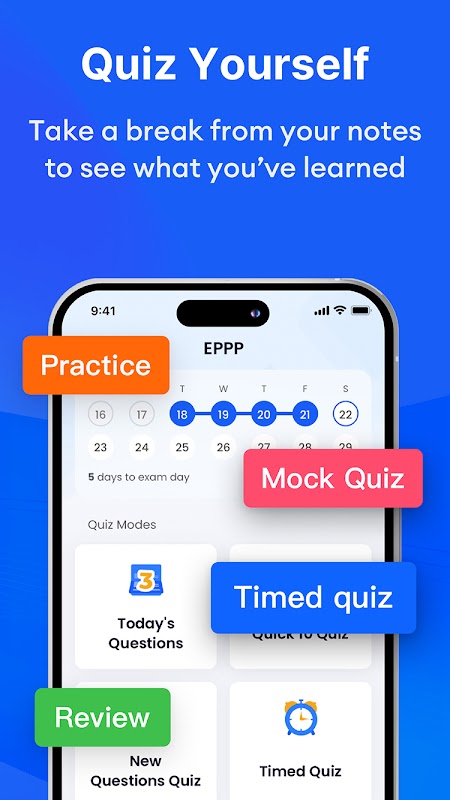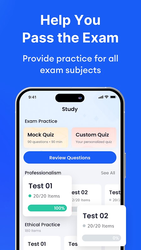¡Ayudarlo a prepararse para el examen de certificación EPPP® y aprobarlo en su primer intento en el examen real! Utilice la aplicación móvil EPPP® Practice Exam Prep 2025 desarrollada por nuestros expertos en exámenes para ayudarle a prepararse para el examen y aumentar su confianza.