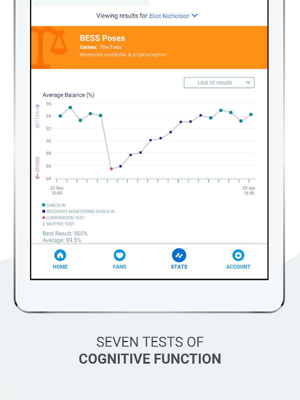 EQ usa juegos atractivos para evaluar la salud de tu cerebro y te recompensa por jugarlos con fanáticos para animarte. ¡No solo disfrutará haciendo las pruebas, sino que también estará incentivado a dar su mejor esfuerzo!