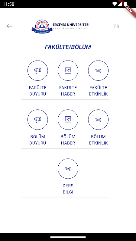 Aplicación móvil de la Universidad Erciyes; Está preparado para estudiantes, personal, futuros estudiantes, futuros empleados e invitados.