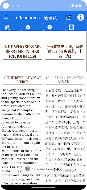 Documentos del Magisterio de la Iglesia Católica en inglés y chino (tradicional y simplificado).