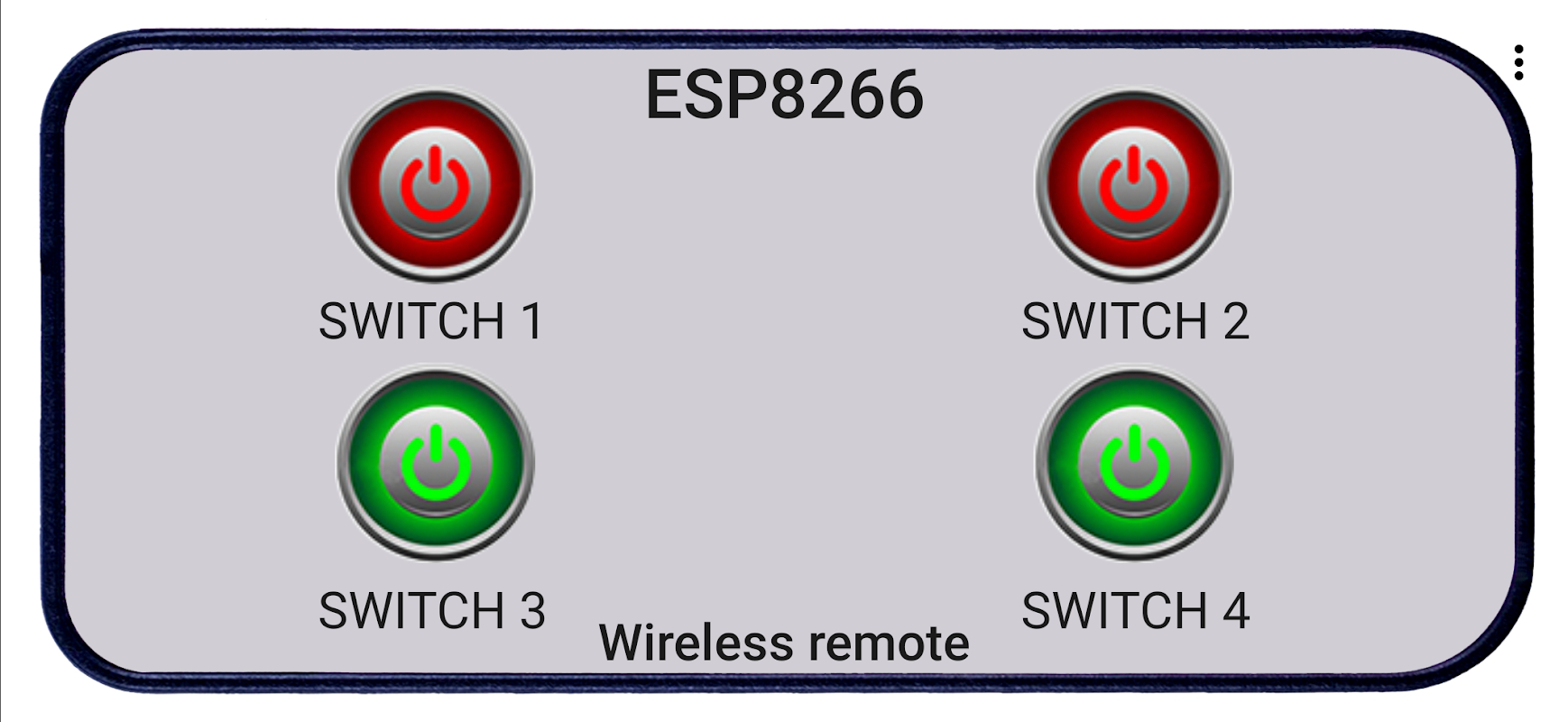 ESP8266Switch es para controlar hasta 4 interruptores, utilizando el módulo NodeMCU y el boceto ESP8266_Switch.ino.
