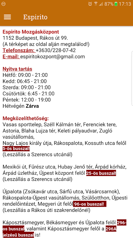 Az Espirito Mozgásközpont a fővárosnak egy olyan aprócska szigete, ahol az edzés elsősorban élmény, ahová az emberek nemcsak azért járnak, hogy sportoljanak és változtassanak az életmódjukon, hanem azért is, hogy egy Csapat, egy Közösség részei legyenek. Itt senki senkit nem néz ki azért, mert régi a melegítője, vagy mert túlsúlyos. Mindenkit elfogadunk, aki szeretne egy összetartó közösség tagjaként sportolni és/vagy életmódot váltani. A cél, hogy mindenki elérje azt a célt, amiért ide jön, és ehhez minden segítséget meg is adunk, amit csak tudunk.