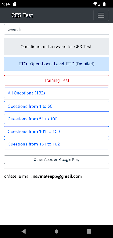 La aplicación contiene 182 preguntas sobre el tema: ETO - Nivel Operacional. ETO (detallado). La aplicación está equipada con una cómoda búsqueda.