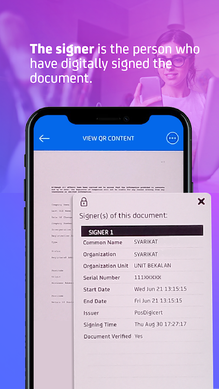 El eValidator se creó para ayudar a los usuarios a validar la autenticidad de la copia física / impresa de los documentos PDF firmados digitalmente que utilizan la solución de firma digital de Pos Digicert. El código QR incrustado en estos documentos solo puede ser leído por eValidator.