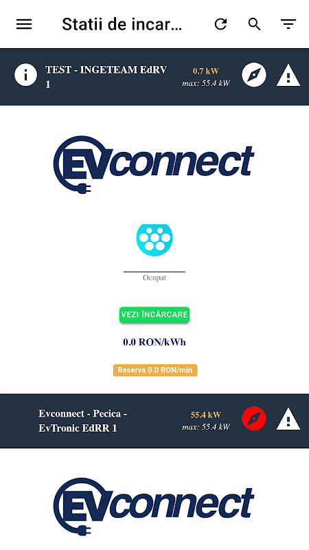 EV Connect muestra la ubicación, la información y el estado de los distintos cargadores, permite al cliente activarlos e iniciar una carga, mostrándole gráficamente el proceso en tiempo real.