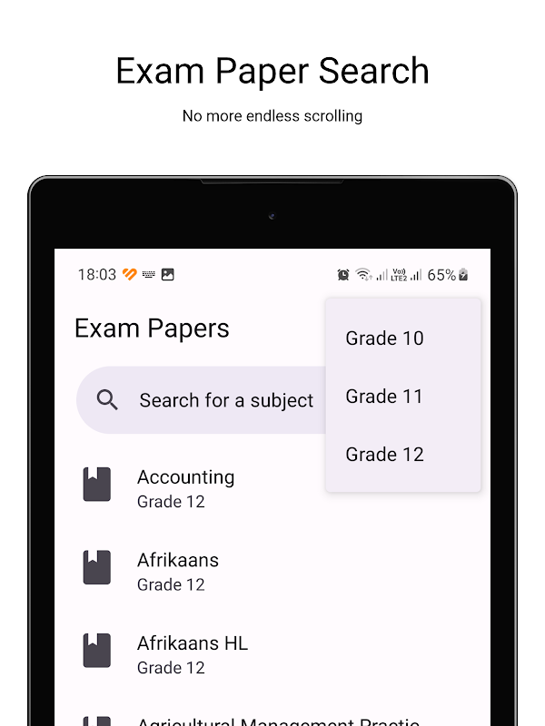 Bienvenido a la aplicación Exam Paper, su recurso definitivo para acceder a exámenes anteriores y soluciones expertas diseñadas para estudiantes de secundaria sudafricanos en los grados 8 a 12 (Matric), incluidos los exámenes IEB. Prepárese para sus exámenes con confianza con nuestra amplia colección de preguntas de exámenes reales y memorandos detallados (notas) o guías de calificación sobre diversas materias, como Matemáticas, Inglés, Ciencias, Contabilidad y más. Manténgase organizado y concentrado con recordatorios y notificaciones de estudio. ¡Descarga la aplicación Exam Paper ahora y desbloquea tu camino hacia el éxito académico!