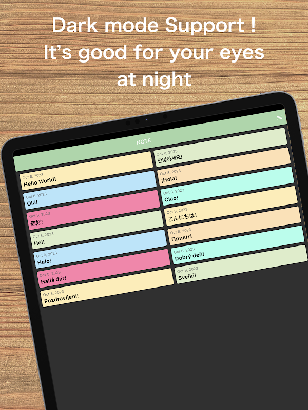 Cree, edite y guarde notas de texto. Esta es una función básica como bloc de notas. Es útil para registrar información e ideas importantes.