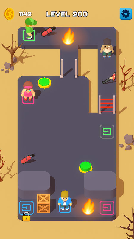You need to get to the exit and go to the next level. Draw with your finger the path that people will run to the exit. Beware, all kinds of dangers await you!