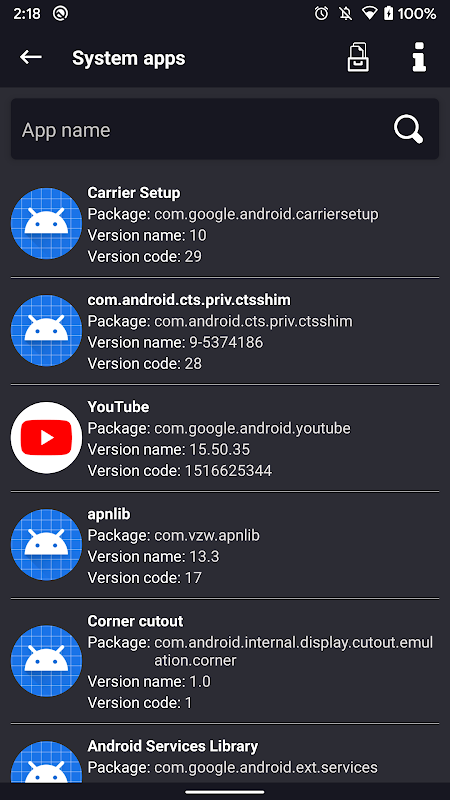 - Search app name.