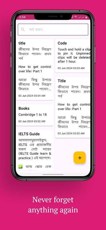 Notas ilimitadas: sin restricciones en cuanto a la longitud o la cantidad de notas (sujeto al almacenamiento del teléfono).