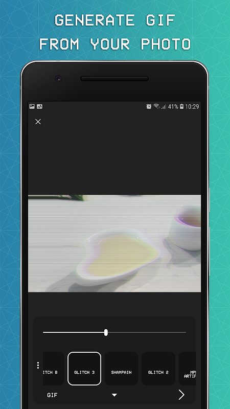 - Crea imágenes GIF, MP4 o glitch art con efectos glitched