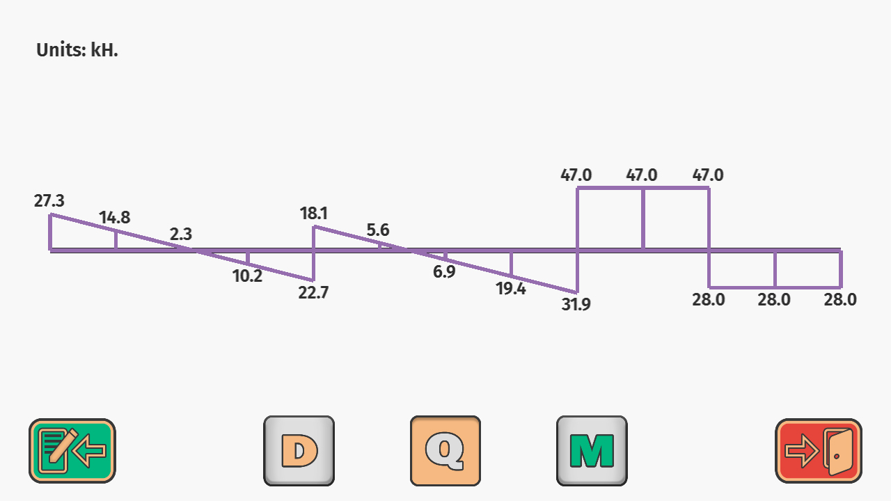 En tareas donde se pueden colocar soportes, la aplicación verifica la inmutabilidad geométrica de la estructura antes de realizar el cálculo. De esta forma, entrena al usuario para crear sistemas estables.