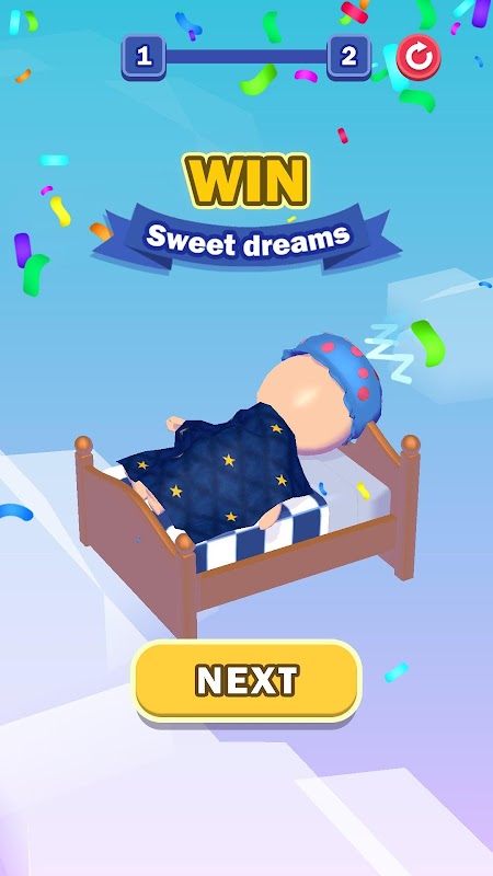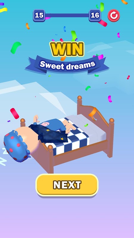 Borra los bloques para volver a caer en tu cama.
