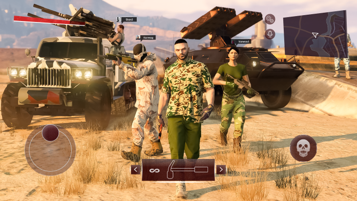 La ciudad es grande, será más rápido llegar a un lugar en coche. Compra un vehículo y afínalo todo lo que quieras. Armadura para disparar, motor para carreras y elementos visuales para mostrarse en público.